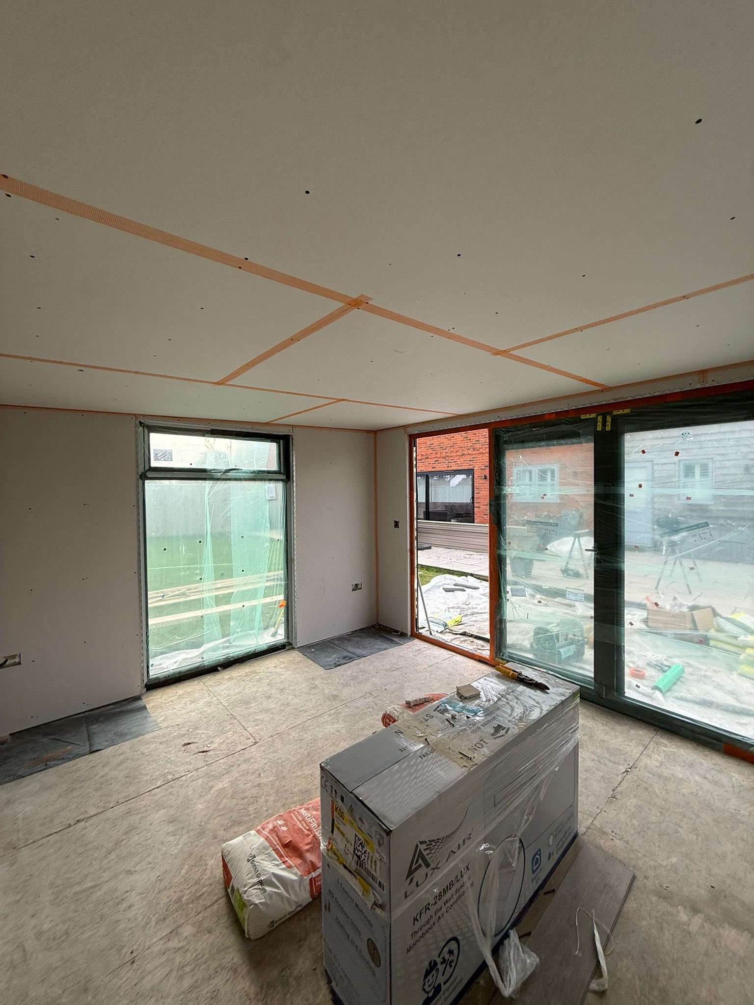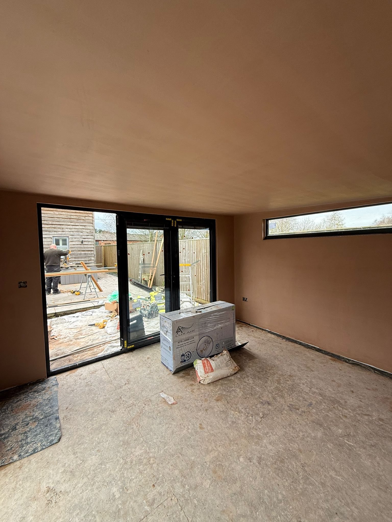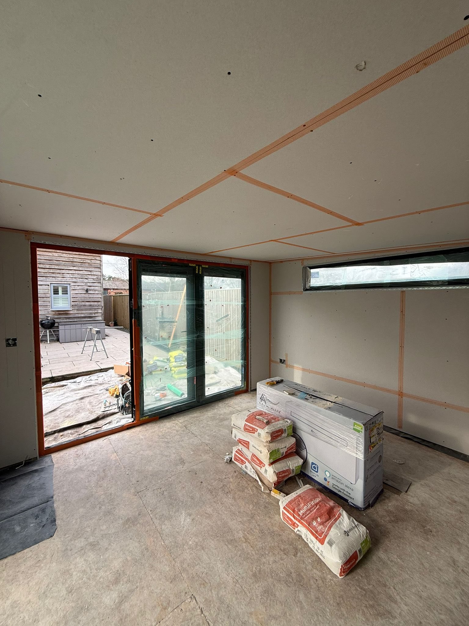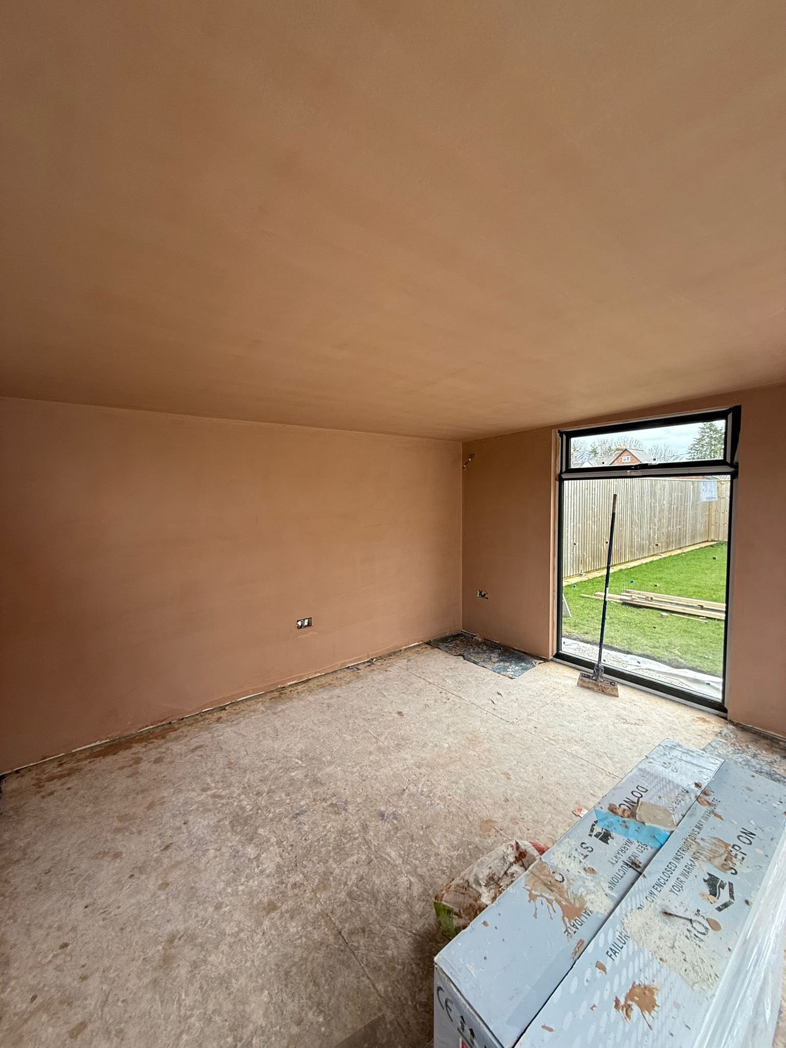 A look at a recent garden room build where we delivered clean internal finishes and smooth plaster-ready surfaces — prepared for decorating and finished to look right in natural light.